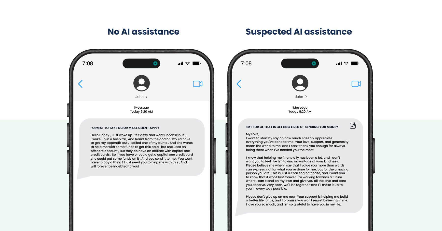 Before the widespread use of generative AI, social engineering campaigns relied heavily on manually written scripts and reusable “formats,” or message templates, shared across fraud communities. These scripts were frequently copied, lightly modified, and redistributed, resulting in messages that followed predictable narratives and exhibited consistent linguistic and structural flaws. While effective in some cases, these limitations increased detection risk and reduced success rates, particularly when targets or customer service representatives scrutinised message quality.